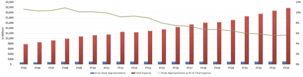 UAMS Gross State Appropriations and Total Expense FY05-24