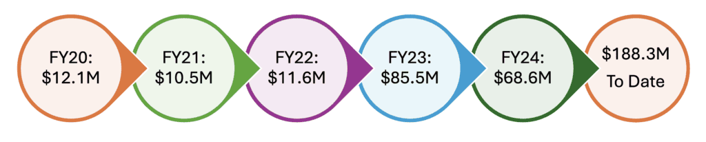 Since it was formed in FY19 the ReOp Committee has identified initiatives that have had a cumulative financial impact of $188.3M. In FY24, 20 initiatives were identified and tracked and had an overall financial impact of $68.6M. The projects with the largest impact were in pharmacy ($21.7M), reduction in overtime and premium pay ($11.3M), workforce productivity ($10.5M), UAMS Health service line initiatives ($9.2M), and supply chain ($6.2M).